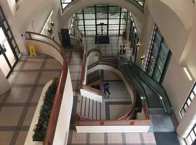 ![]() 庄月明楼内部造型也十分诡异,从顶端玻璃往下,玻璃上有一些类似铜钱形状的特殊图案,顺着楼体串联起来,正好形成一把金钱剑。此处的寓意除了安魂作用外,还顺带旺财。大楼里面只有上行的电梯,下行道都是一些歪歪曲曲的楼梯,楼梯的扶手都是制作棺材常用的材料柳州木,由于柳州木粗糙并不适合做扶手,据说很多人在楼梯上跌过跤。大家仔细看下面这张照片,楼梯造型相当复杂,乘上行电梯上到某一层,却不能顺楼梯下行回到原处,上个厕所要走两三层才能到达,楼梯转角没有直线,构造十分诡异,这里也成了港大鬼故事的来源地。 ![]()
