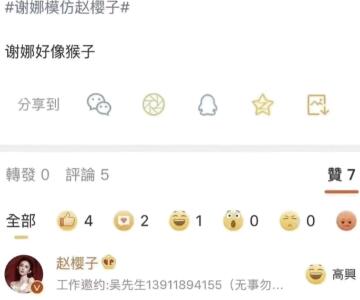 谢娜模仿赵樱子说话,赵樱子却手滑点赞“谢娜好像猴子”的评论