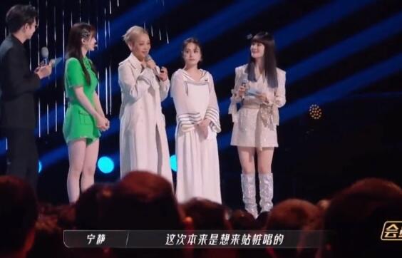 一公表演,同组的宁静和阿娇都是白色系,就她一个人穿了扎眼的绿色。