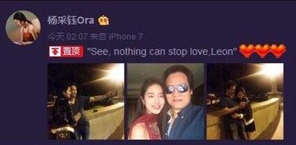2017年7月,杨采钰在微博承认恋情,当时还借用《这个杀手不太冷》里面的经典台词——“里昂,看,爱是无法阻挡的”。两人相差30岁的恋情还引起不小轰动和争议,杨采钰还在评论区怒怼网友:“从恋爱开始,我就从未觉得这和其他感情有任何不同。” ![]() 此外,有知情网友表示杨采钰家境很好,杨采钰是中泰混血,爸爸是泰国人,当年考北电的时候还是以外籍身份走的留学生通道,完全不需要“傍大款”,选择跟陈金飞在一起纯粹是爱,正如杨采钰说的:“从恋爱开始,我就从未觉得这和其他感情有任何不同。” ![]() |