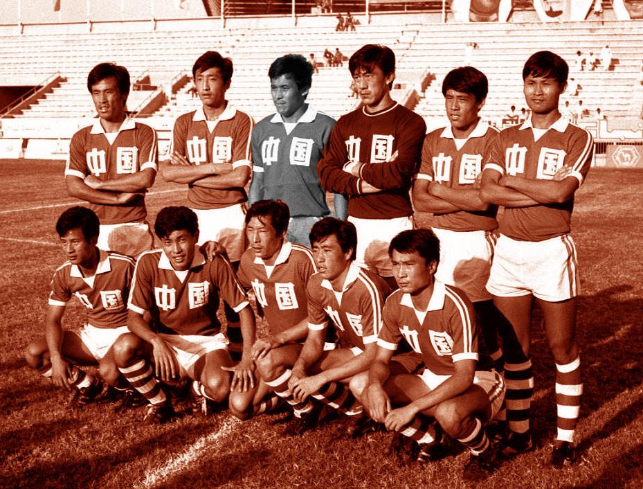参加1982年西班牙世界杯亚大区预选赛的中国足球队的教练员和球员们:苏永舜、张宏根、胡之刚。7杨玉敏、15古广明、9徐永来、13沈祥福、18容志行、11陈金刚、6黄向东、8左树生、20陈熙荣、4林乐丰、12臧蔡灵、5迟尚斌、2蔡锦标、16王峰、3刘志才、1李富胜、22杨宁 • 21吴育华、黄军伟、李福宝、14刘利福、10刘承德、许建平。