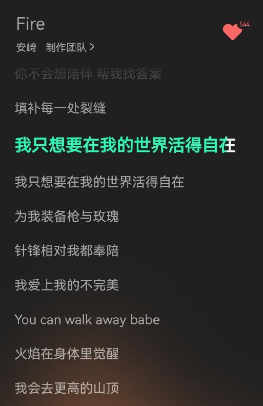 "我只想要在我的世界活得自在"出自安崎于2022年12月23日发行的歌曲《Fire》。