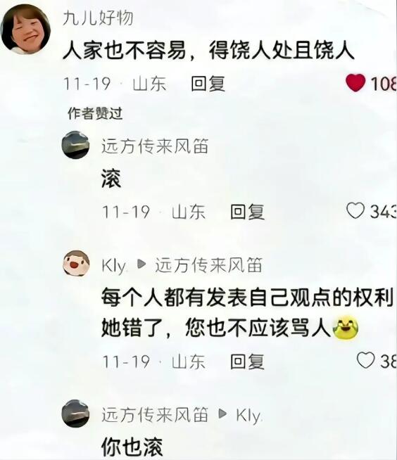 最近这句歌词因为抖音一个网友的网名火了,这个网友名字就叫做@远方传来风笛,有人在评论区对他指指点点,说三道四,这位网友完全不惯着!直接用“滚”回之。 ![]() ![]() ![]()