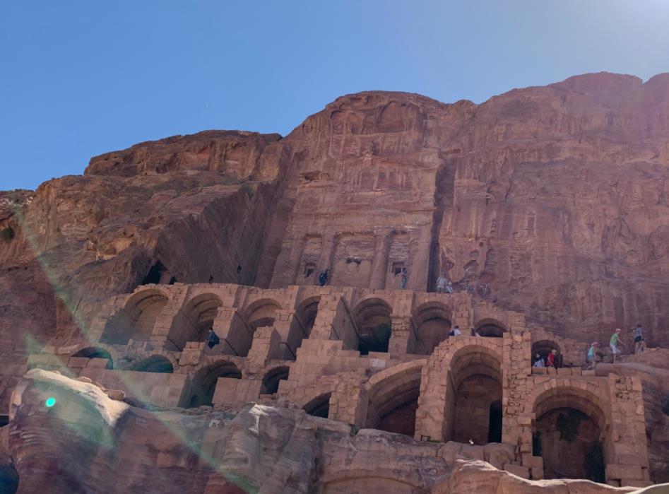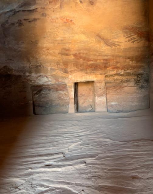 ![]() 佩特拉古城有一个名字叫“玫瑰谷”、“玫瑰古城”,之所以叫这个名字有2个原因: 第一、这里在阳光的照耀下会呈现红色。 第二、因为英国诗人约翰威廉伯根的这句诗:“令我震惊的事物存在于东方风土之上,玫瑰红城见证半数岁月长河”。 佩特拉古城除了卡兹尼神殿之外,周围还有大大小小的不少墓穴,下面是佩特拉古城里的皇家陵墓群,不过里面就是一个个空空的洞。没什么东西。 ![]() 墓穴的内部是这样的 ![]() |