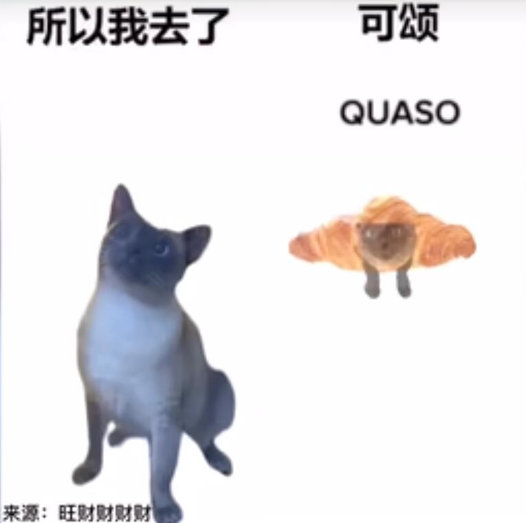 也有网友表示这个梗是源于英语国家喜欢讲可颂念成croissant,但是总会引起法语使用者的反感(因为可颂面包是法国的产物)。一部分法语使用者化身读音警察,纠正可颂的读音为quaso。时间一长,法国人纠正可颂的读音,已在外网成为一种梗,之后也有了可颂猫这个meme。