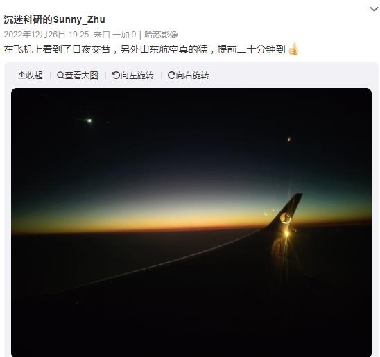 网友一:从济南到兰州,本来9点10到达,最终8点44到达。 ![]() 网友二:在飞机上看到了日夜交替,另外山东航空真的猛,提前二十分钟到 ![]() 网上还有个段子是这么说的:山航的飞行员之前都是开战斗机的,所以开的贼猛。 ldj来机场接我和司机说:麻烦快点 我赶时间
