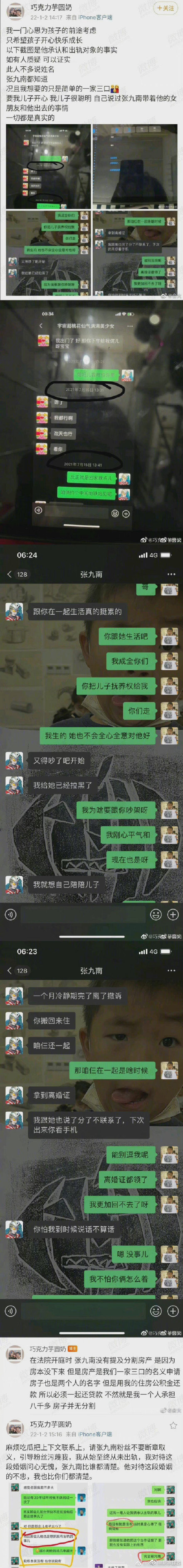 第一、关于张九南出轨,张九南的妻子@巧克力芋圆奶写道: