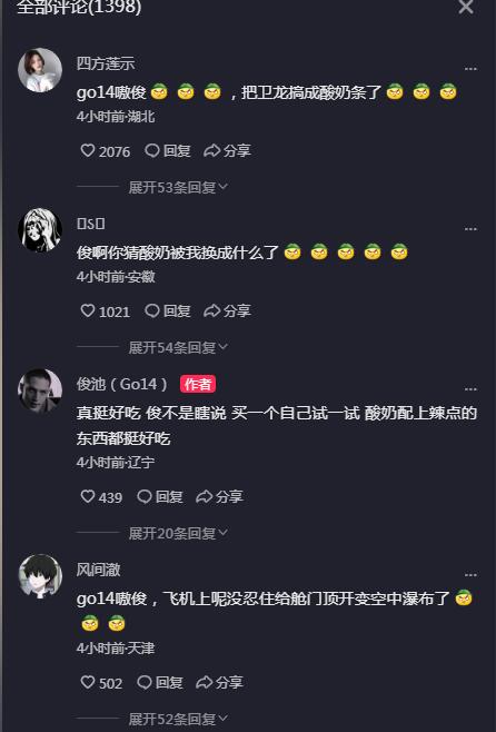 该梗出自视频博主@俊池 ,实力宠粉的他面对粉丝提出的各种要求都会尽力满足,网友们纷纷在他评论区留言“go14嗷俊”。