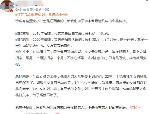 下面是江西网友们针对彩礼问题的回复,大家可以做个参考: