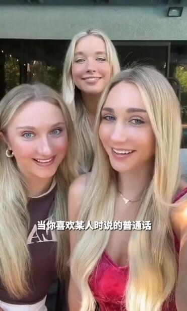 原版出自TikTok上,来自加州热爱讲中文的美国三姐妹,她们凭借动人的歌声和优美的舞姿吸引了不少网友的关注。然而除了唱歌跳舞外,她们还有一项爱好就是讲中文。