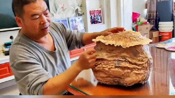 近日,新疆伊犁,一男子晒出自己家中养了4年的一只“太岁”。据了解,2018年,男子在工地开挖土方石时,意外捡到了黑太岁。随后,便开始在家中用山泉水养了起来。如今,4年过去,这只黑太岁已从捡到时的6.55公斤长到了14.03公斤。下面是男子养的黑太岁的图片,看起来并不是黑色的。