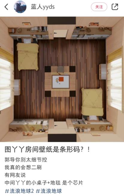 因为郭帆导演的一句话,很多网友已经决定二刷、三刷,甚至四刷了,专门去扫条形码。目前来看,因为不同的影院观影环境,导致扫码成功率大不相同,有成功的网友表示,壁纸的二维码扫码成功后得到的是“房间的VR”,也就是手机VR展示图丫丫的房间。 目前网络上的最清楚的剧照扫地毯或者壁纸,都没有成功的,给大家找了几张高清图 ![]() 地毯看起来更像是条形码 ![]() 有意思的是,如果你俯瞰图丫丫的房间,整体的布局像是一块芯片 ![]() 总结一下:那个U盘上可以看到图丫丫生日,推出属兔。现实世界中衣服上的兔子是笑脸,变成电子生命后衣服上的兔子变得不高兴了。图丫丫房间的壁纸是条形码,而且可以扫出来的! 关于图丫丫属兔的问题,也有争议,有网友认为:“图丫丫生日是2034年3月7日,2035年才是兔年,就算按农历也不会属兔,不过有人说可能她的数字生命是属兔。” |