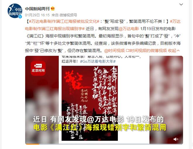 宣传海报中写的岳飞名作《满江红》怒发冲冠,出现大量错别字。道拍完了一整部满江红宣发部门所有人都不知道靖康是年号吗?没有人去考证一下满江红原文字帖吗?