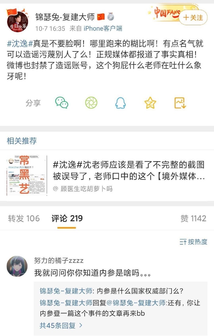 因此之后网友们就会把沈逸和“内蒙古海参”联系到了一起。