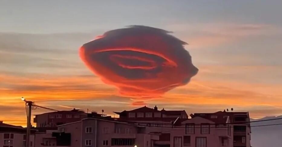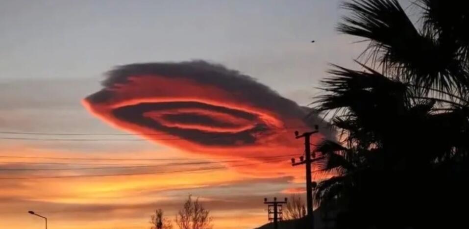 第一个,在1月19号的时候,土耳其的天空出现了一团赤红红色的奇怪云朵,小孩看着像棉花糖,大人看到起皮疙瘩,甚至有点恐怖。小编查了半天,网络和一些书籍中,并没有类似云的记载。