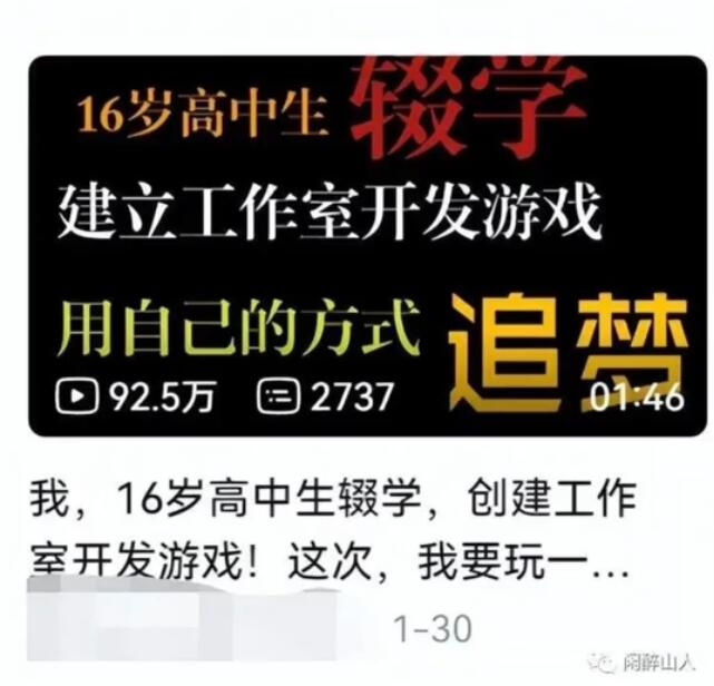 16岁高中生辍学做游戏是什么梗?
