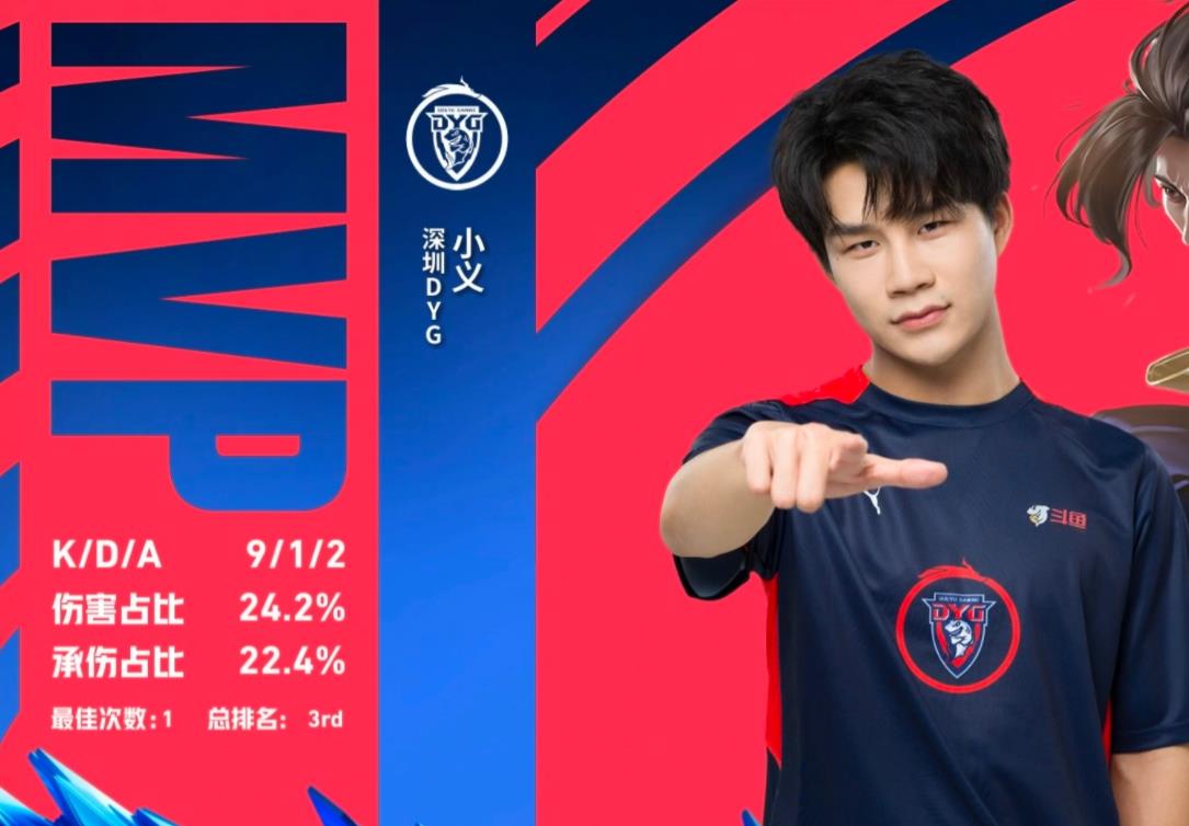 2023年2月10日,在“2023KPL春季赛常规赛”的比赛中,深圳DYG对阵长沙TES.A,最终凭借小义的出色发挥,深圳DYG1:0获胜。前期深圳DYG主动进攻,不断开团造成对手减员,拉开经济差距;中期深圳DYG不断控制野区及中立资源,利用优势平推压塔,压缩对手生存空间;后期小义宫本武藏切入后排势如破竹,潇洒三杀,深圳DYG一波拿下比赛胜利!