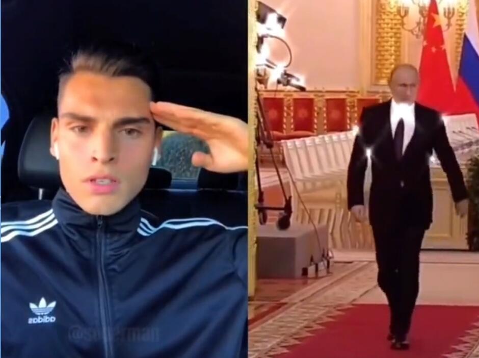 “外国小伙敬礼”来自于几年前一段外国小伙在车里与他人连线时的视频,据说原版是俄罗斯小伙见到普京的反应
