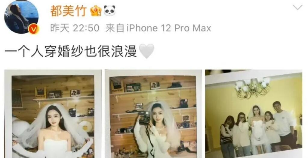 2月14日情人节,都美竹发婚纱照并配文:一个人穿婚纱也很浪漫。虽然没有爱情,但却收获了粉丝,收获了事业,还是挺不错的 。