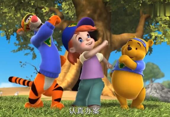 出自动画片《小熊维尼和跳跳虎》里,主角们一起集合出发办案时的片段。