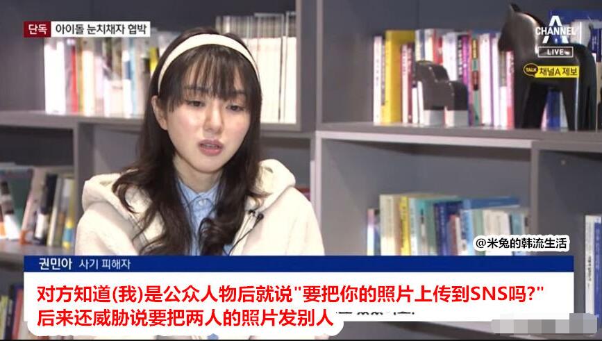 第一、权珉娥陪聊被骗事件。 AOA前成员权珉娥自曝兼职陪聊被诈骗1500万韩元(约人民币8万),她称居家办公时看到提示,以为只要男人建了聊天室,女人进去聊天就可以了,结果对方知道自己是公众人物后,便威胁要公开她的照片。不得不说,权珉娥好惨,一直都在信任别人一直都在被骗,曾经被父亲家bao 还被霸凌过…前段时间她在二手市场也被骗过5000韩币 简直就是小说女配的对照角色了… ![]() 第二、权珉娥被申智珉霸凌事件。 权珉娥被霸凌事件来自一次控诉,内容是:
