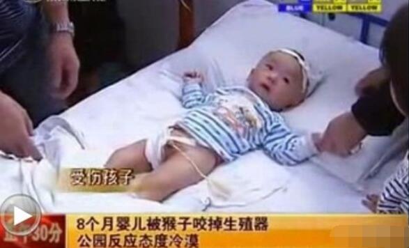 “峨眉山猴子咬掉男孩睾丸事件”发生在2013年,一位母亲带着8个月大的男婴在峨眉山逗猴子的时候,遭到猴子攻击,男婴的睾丸被猴子当场扯掉,猕猴饶有兴致的将睾丸观察了一会儿后,放进口里大嚼起来。被扯下睾丸的男婴被紧急送往医院,虽然生命无大碍,但长大后生殖能力堪忧。