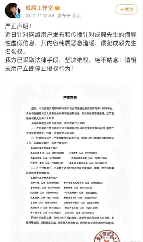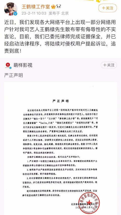 不过目前王鹤棣和成毅两家同时发声明,针对近期网络上的骂战进行维权。