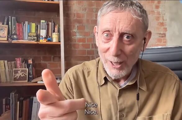 “nice爷爷”指的是英国知名童书作家迈克尔罗森,他经常会在节目中演绎他的作品,这段火爆全网的“nice”就出自他《hot food》中截取的一个片段。