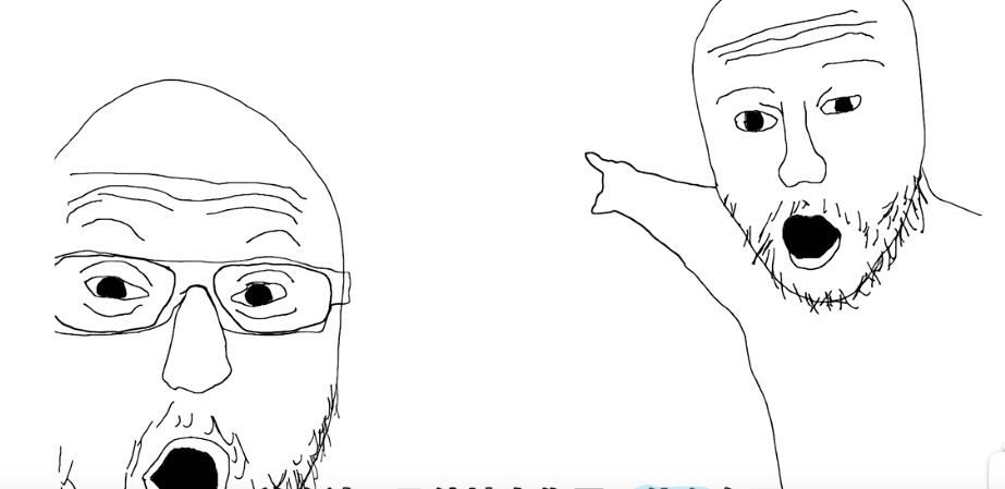 而“wojak”这个名字则是最初在德国版4chuan将这个表情包发扬光大的人物的网名。在之后,这个表情包丝毫没有任何淡出外网梗的迹象,有了源源不断的各种变体以及相应的衍生梗,还有人为他们做杰漫画,因为实在是太多太多了,在这只简单的举几个比较出名的衍生梗。