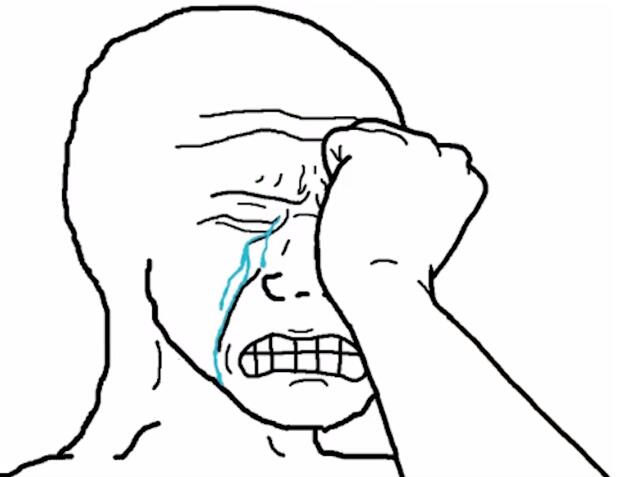 Crying Wojak,名字并不能完全解释这个表情包,实际上是个被气哭的Wojak
