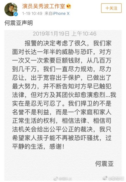 2018年10月8号,吴秀波跟小三签了和解协议,可能也是敲诈勒索的证据之一。