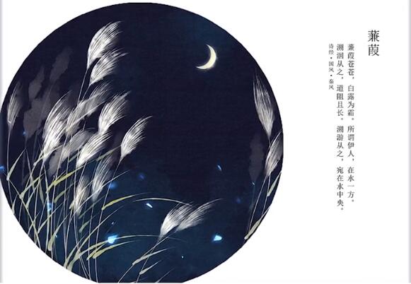 “蒹葭”是《诗经》中所描绘过的“蒹葭苍苍,白露为注霜。所谓伊人,在水一方注”代表着爱人。