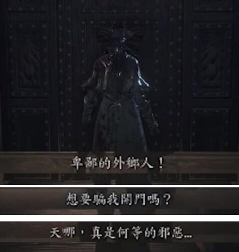 这因为在游戏的背景中,亚楠由于的血疗的缘故致使大部分人兽化,而游戏的主角是一个从外乡而来寻求帮助,却卷入猎杀之夜的猎人。如此危险的时刻,让别人一个孤苦伶仃的老人给你开门,也难怪会被称为“卑鄙的外乡人”。