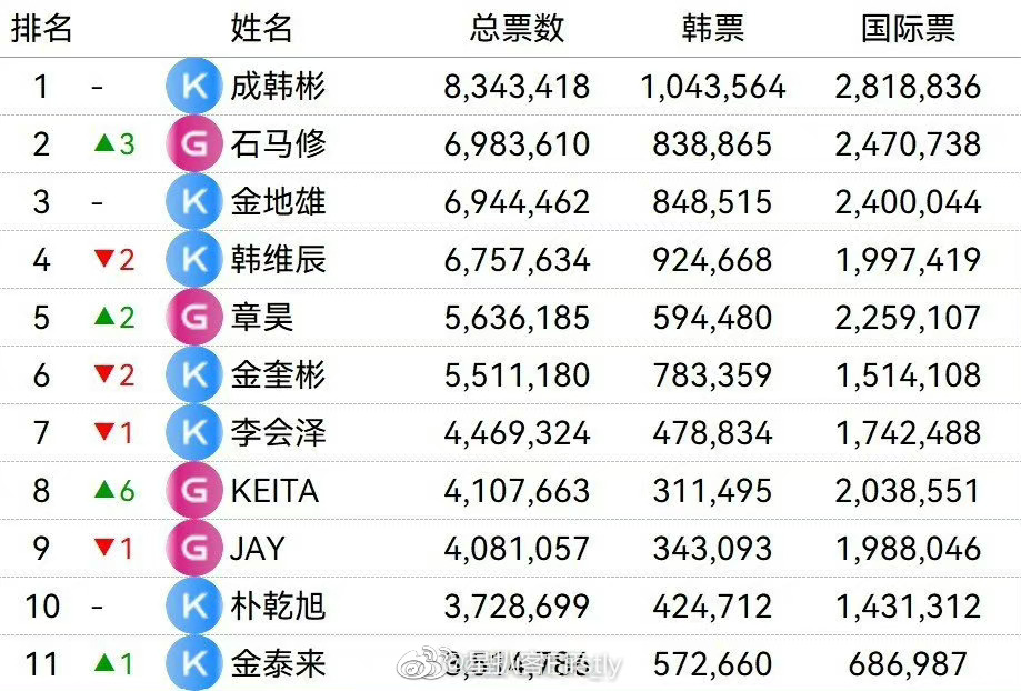 可见K组和G组的区别就是练习生国籍上的区别,K=Korea,即韩国、G=global,即全球。 ![]() K组名单: