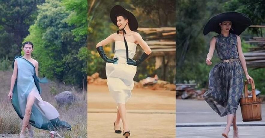 其次就是他极致抗打的业务能力,无论是崎岖不平的山顶还是田间小路,不管在废弃工厂还是烂尾楼。都能迈出六亲不认的步伐,只要陆仙人想走,哪怕是光着脚乡间小路也能走出世界之巅。在陆仙人的作品中极具生命力,让你时刻有种在巴黎时装周的既视感。然后就是他那天马行空的创意,堪比大牌设计师。因为没钱买昂贵的布料,陆仙人用身边一切可利用的材料,甚至来拿树枝树叶都能穿身上,编织袋、塑料袋通通能做成礼服,披上家里奶奶压箱底的毛毯,效果丝毫不比模特们身上的皮草差。没钱买配饰,就地取材,空调、洗完手套、垃圾桶都让陆仙人带出国际范,连他最常出境的黑色大草帽,都是一个大妈在看完她走秀送的,所有不起眼的东西,在陆仙人身上都能穿出高定的时尚感,拽上天的表情,自带鼓风机的台步。在他看来,时尚不是穿时尚的衣服,而是一种态度。陆仙人证明,中国网红也能走向国际舞台。