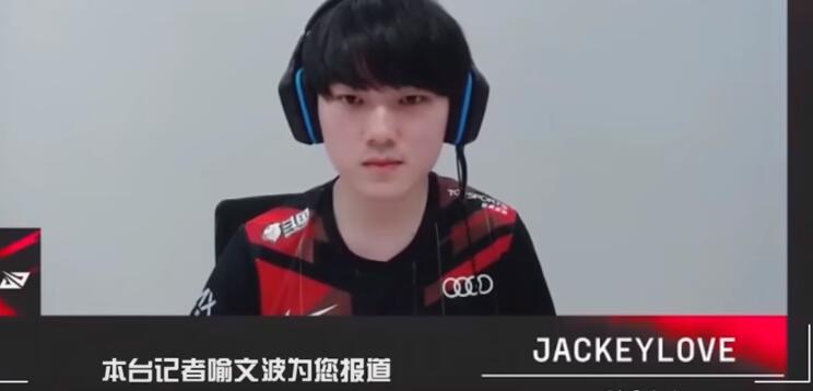 在之后,LPL因为疫情的缘故开始线上比赛,赛后采访也变成了线上进行,水友们就把Jackeylove接受采访时的画面P上了“本台记者喻文波为您报道”的文字,做成了一张梗图广为流传。