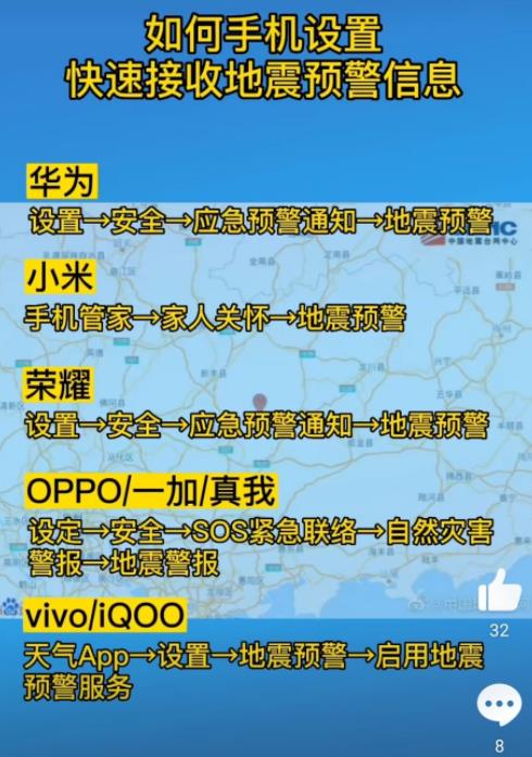 如果你生活在这些地区,可以开启手机地震预警,这样设置