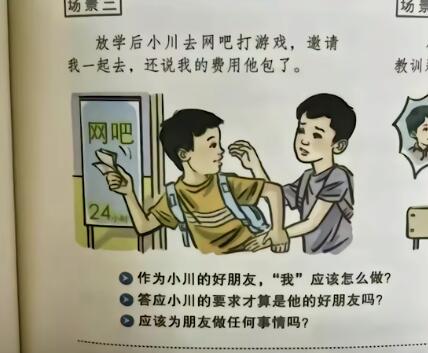 场景三,放学后,小川去网吧打游戏,邀请我一起去,还说我的费用他包了。