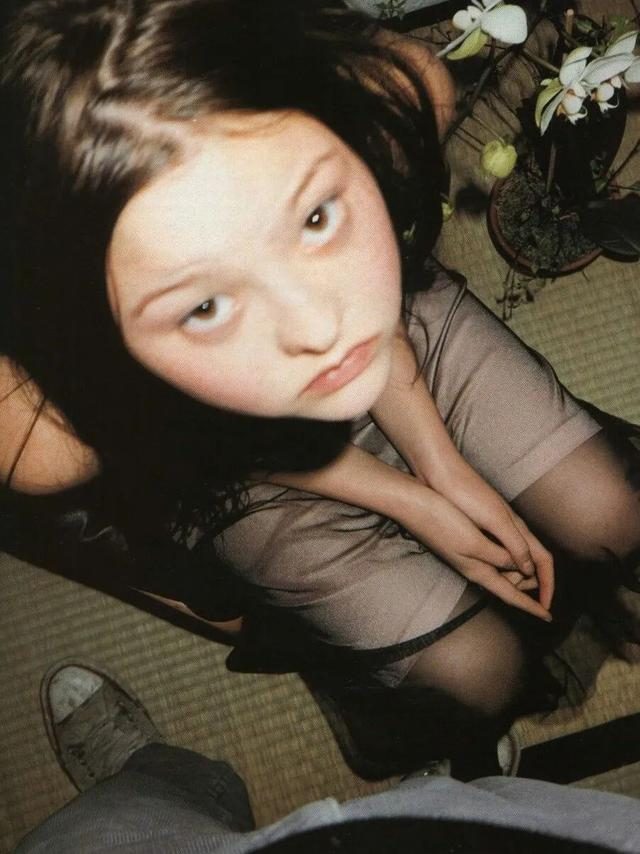 1995年,13岁的她在一场人头攒动的演唱会上被《Interview》杂志编辑相中,短短几天后,他们又在一场派对中再次碰面,于是她懵懵懂懂地替《Interview》拍了些照片。再看看下面这个图,像不像唐氏?