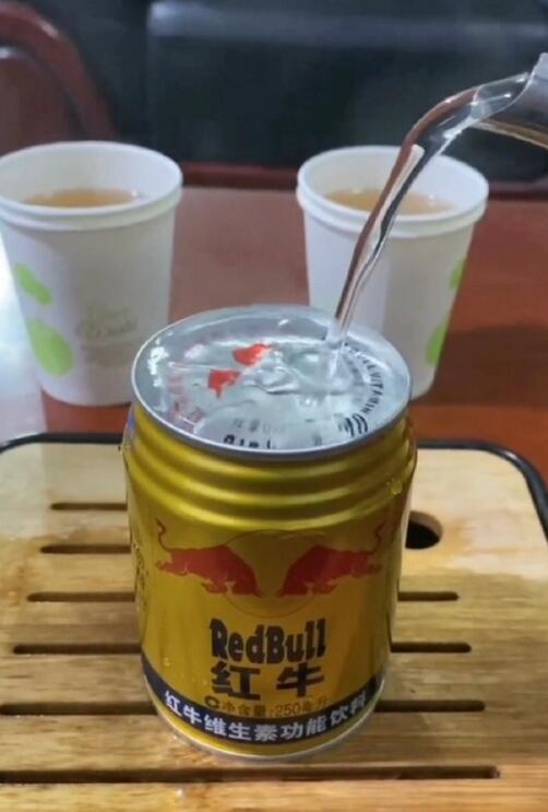 网络中这么一段话“世上无人知你愁,唯有开水烫红牛”,意思是没人懂我的难处,只有喝开水烫红牛,而红牛加热后会产生毒素,喝了全村吃席。