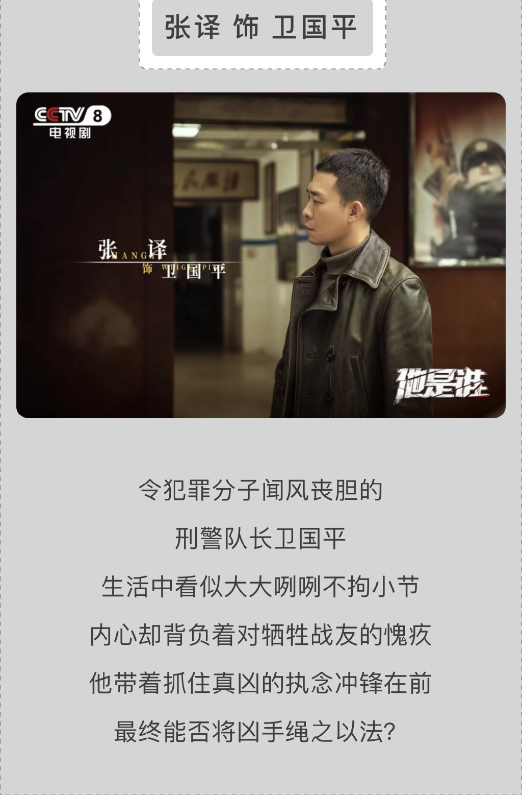 总之,卫国平不完美,是一个有能力、但性格急躁,困于执念提到88案会着急上头不冷静,很老派的的男刑/警形象,说难听点就是有点大男子主义和爹味。大概率是一个成长型男主。