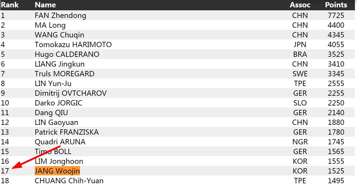 根据世界乒联的最新数据(截止2023年3月18日),张禹珍积分1525分,目前世界排名第17名。