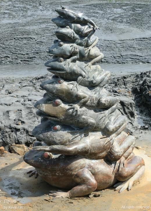 日月潭“九蛙叠像”便是如此,九只大青蛙各个姿态表情不一,相当活泼生动。