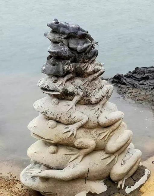 在我国台湾省日月潭的水中,有一个“九蛙叠像”的青铜雕像,本来这座青铜雕像是在日月潭附近的水蛙头自然步道上的。不过1999年,九蛙叠像刚建成后,1999年9月21日,台湾省南投就发生7.6级强震,造成数千人死亡,还引发大规模次生灾害,有两座山的山顶被削!有风水师认为这地震是九蛙叠像引起的,于是就将“九蛙叠像”放到了水中,后来九蛙叠像成了测量日月潭水位专用的工具,下面是九蛙叠像和日月潭水位的对应表。