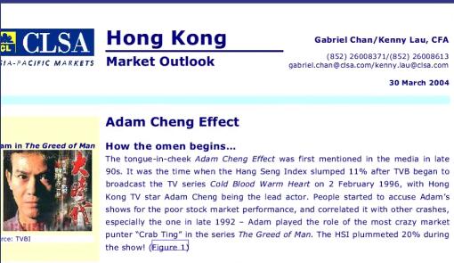 也有分析师指出,这一效应纯属巧合。由于郑少秋的大部分电视计划在每年的八月和九月上演,这与半年一次的收市时间不谋而合,因此市场形势会出现较大波动。
