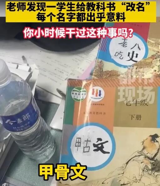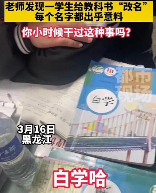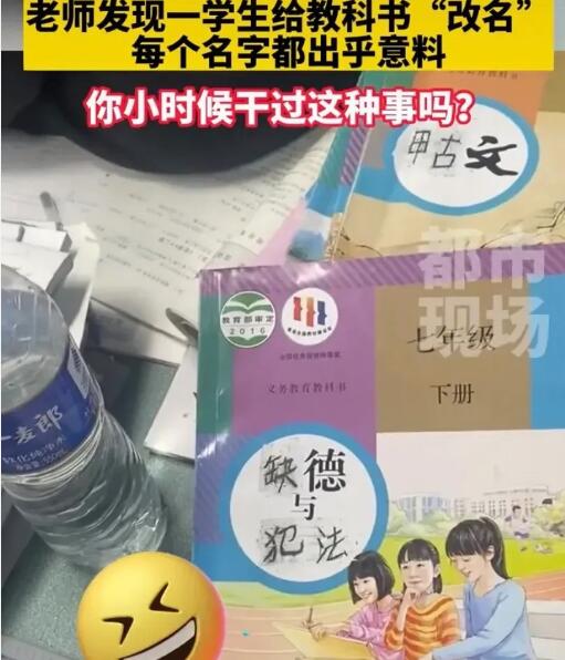 看了一下该学生给教科书的取名,不得不说确实有些脑洞大开,让人没想到。当然,童言无忌,大家也不要去指责该孩子,我觉得孩子有创意有想法是好事,只是没用到正道上而已,只需要平时好好引导,好好教育一下,将来一定有所作为。