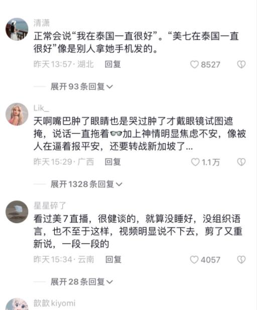 长期以来,泰国一直是中国人喜欢去旅游的地方,最近因为“网红美七777”的事件,很多人对泰国旅游的安全性产生了质疑,事件过程大约是:网红美七777去泰国后隔了很长时间没有更新视频,在网络上关于她可能遇到危险的消息开始发酵,然后美七777终于发视频报平安,不过网友发现这个报平安的视频存在很多疑点,比如:“分段录屏,嘴巴肿,表达逻辑不清,视频也是录得很仓促的样子。印象中的美7不像是这么没逻辑的人。”