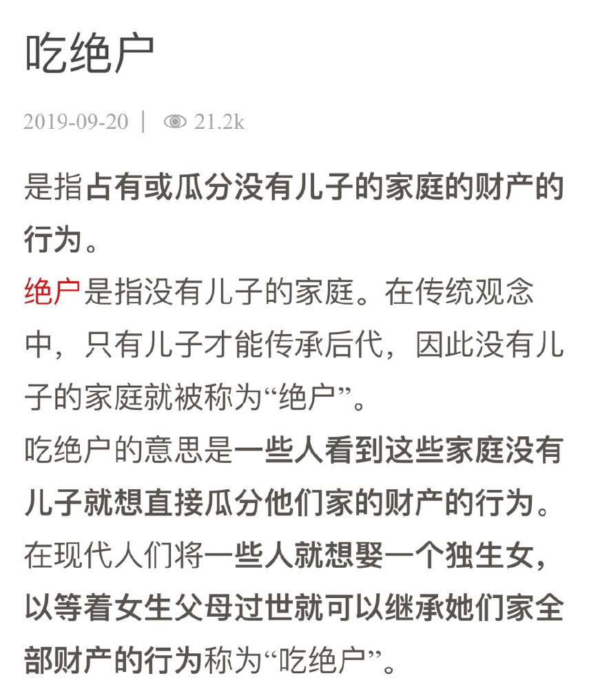 吃绝户什么意思?吃绝户独生女好可怕的旧思想