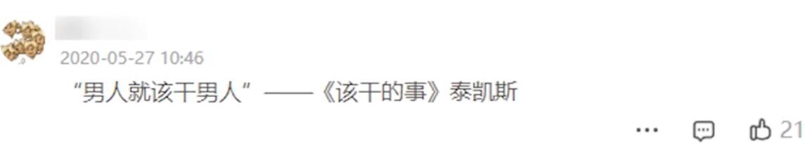 但是由于游戏中该台词经常被玩家的其他操作打断,出现了后面几个字没读出来的情况,结果就硬生生变成了“男人就该干男人...”就这样,前半截台词慢慢在玩家社区间流传开来,成为了一句彰显男子气概的话。