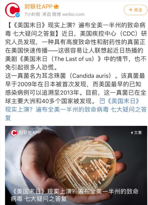 耳念珠菌在美国蔓延,近半感染者90天内死亡!常用消毒剂无效,目前已遍布美国一半以上的州,成为紧迫的公共卫生威胁。